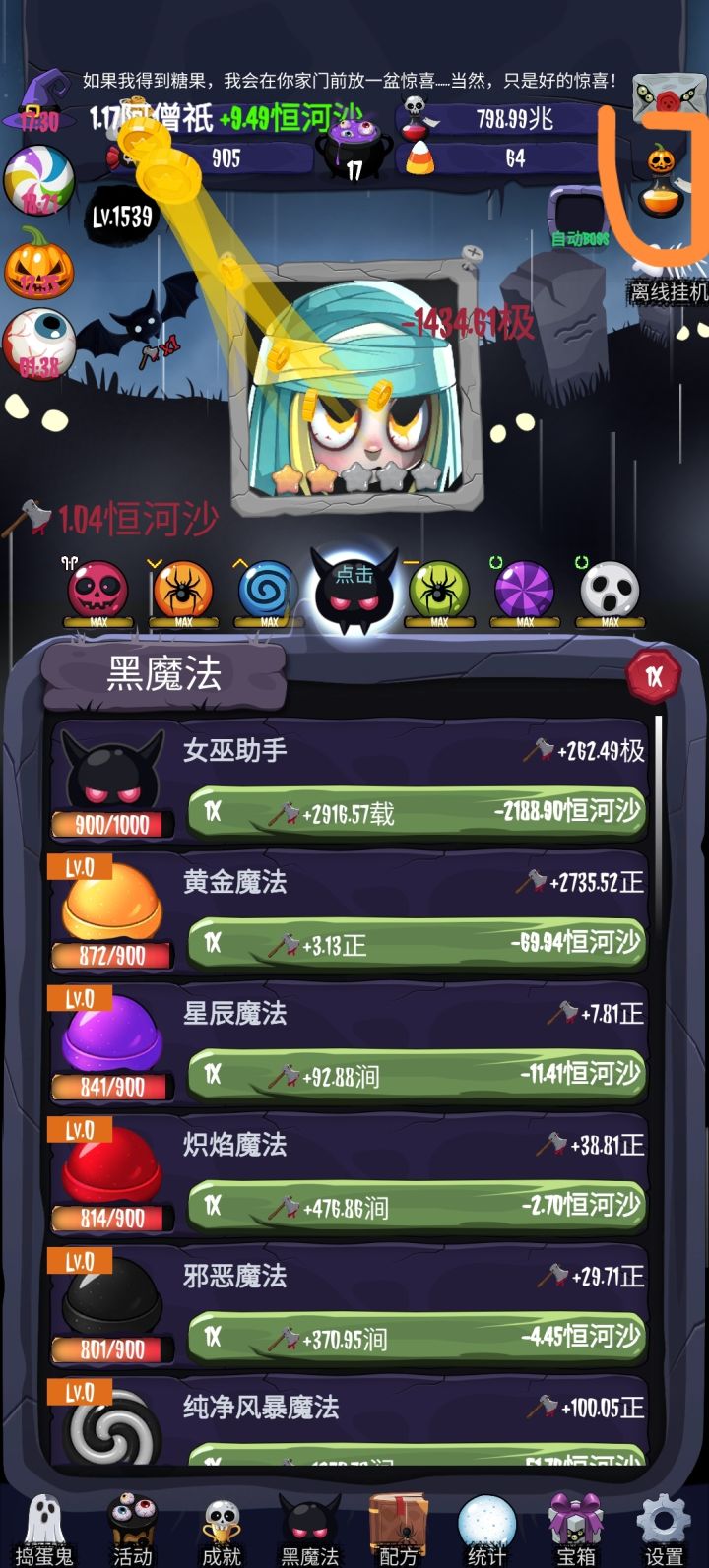 转生:后面5 6转很难刷到前面的10倍,右上角南瓜合剂1小时过后就可以开始转了。