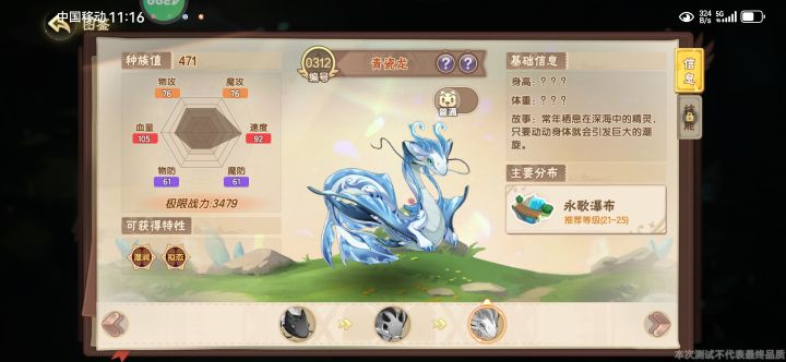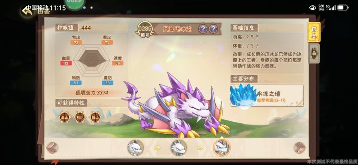 ⭐实用性宠就比如四大主宠超进化后种族值和战力都很可观,其次就是一些抓的以及活动中送的,漩涡王已经被青瓷龙(泥鳅)所取代,蝎子狼王可以选其一养、冰幼龙、蟠桃大圣、塔达、化石战魂、部分天启boss等等都是蛮不错的(上有一部分的图,可以看它种族值来判断)。