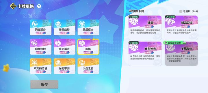 专属篇 蓝色推荐神圣烙印 紫色推荐制裁领域 狂热追击 不屈骑士 橙色不推荐 这几个专属都是提高伤害的