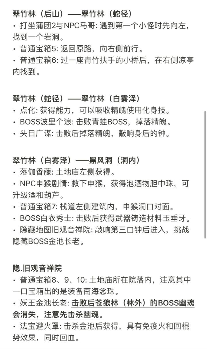 ·点化:获得能力,可以吸收精魄使用化身技。.BOSS波里个浪:击败青蛙BOSS,掉落精魄。·头目广谋:击败后掉落精魄,敲响身后的钟。