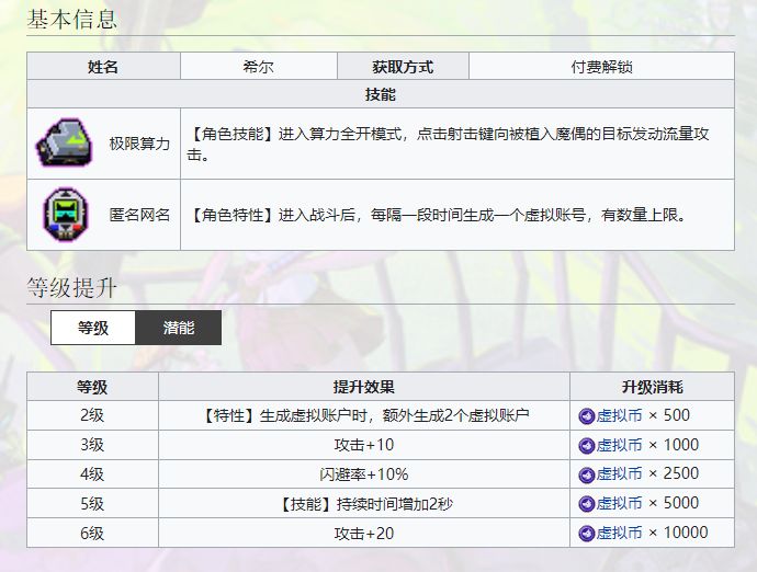 被动技能:一段时间生成一个虚拟账号。没有虚拟账号?希尔可以生成!