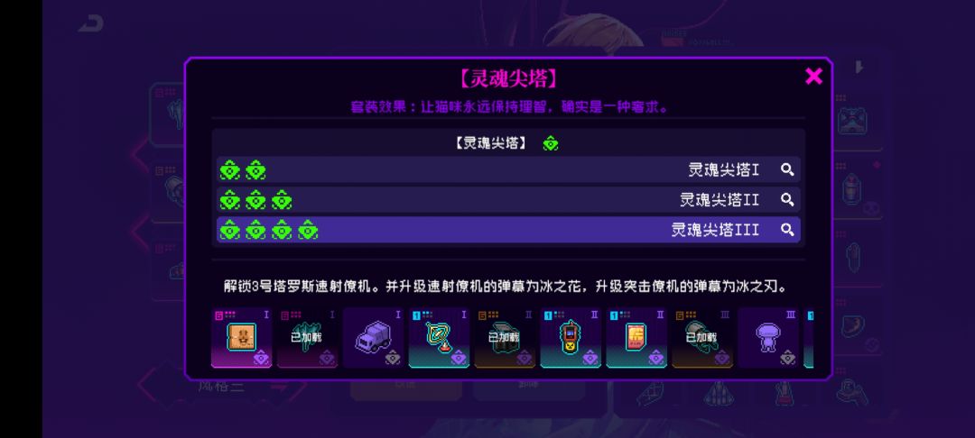 四件套效果很好理解,就是它开始不发射子弹了,开始发射冰花冰刃了