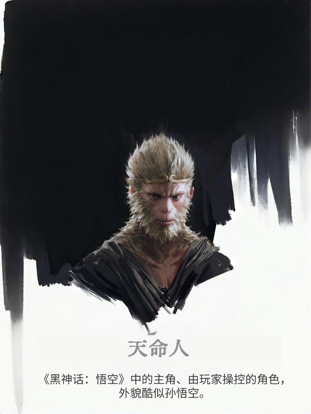 《黑神话:悟空》中的主角、由玩家操控的角色,外貌酷似孙悟空。腰间挂着一个葫芦。着腿甲但是不穿鞋。沉默寡言。