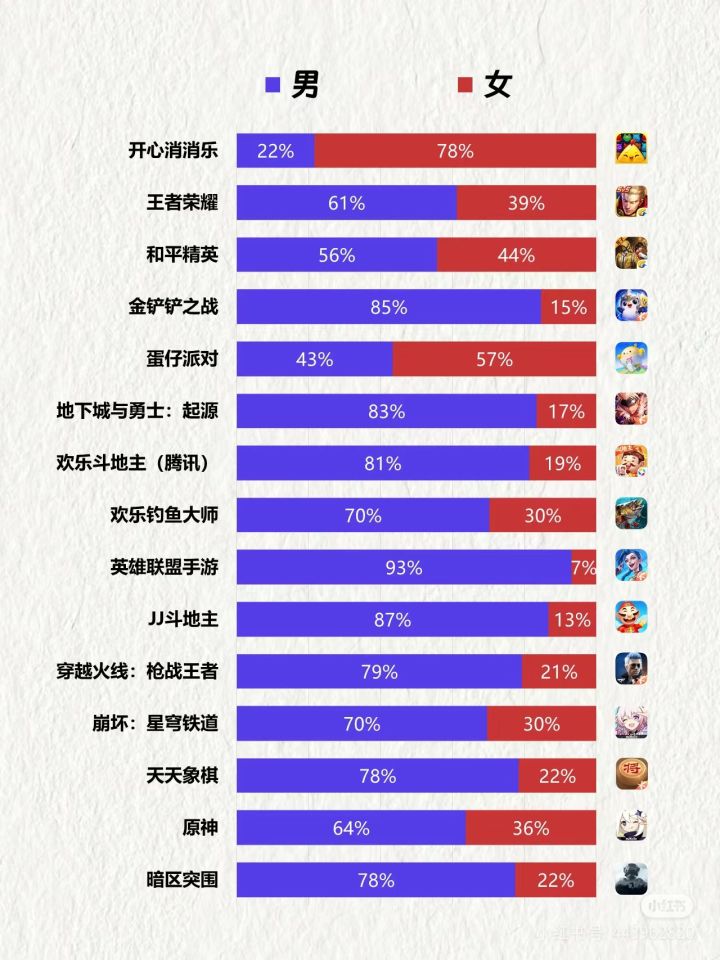 2用户性别构成方面,开心消消乐和蛋仔派对吸引了更多女性用户;其余游戏男性用户占比均较其中英雄联盟手游男性用户占比高达93%。