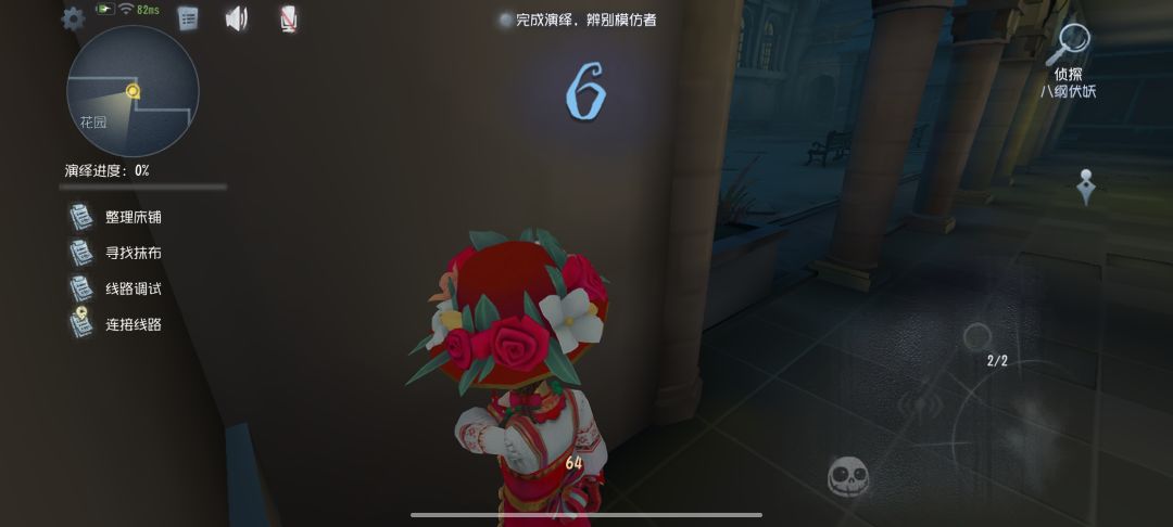 Frist,we can苟起来,以miss过首轮刀,点位推荐是①娱乐室一笔画任务旁边的屏风,高级视奸位,可以卡视角,看到一笔画和通道,也可以看娱乐室与花园交界处,但缺点也很明显,被别人堵在门口就出不来了,实测可以塞三个人,送货员自助区;②西浴室最靠寝室的门口那的隔间,缺点是容易被眼尖的人发现;③花园那排柱子的左右两侧,不过有点开放;④锁匠专属位:通道,真正的无敌点位,缺点:容易被怀疑和被发毕业证