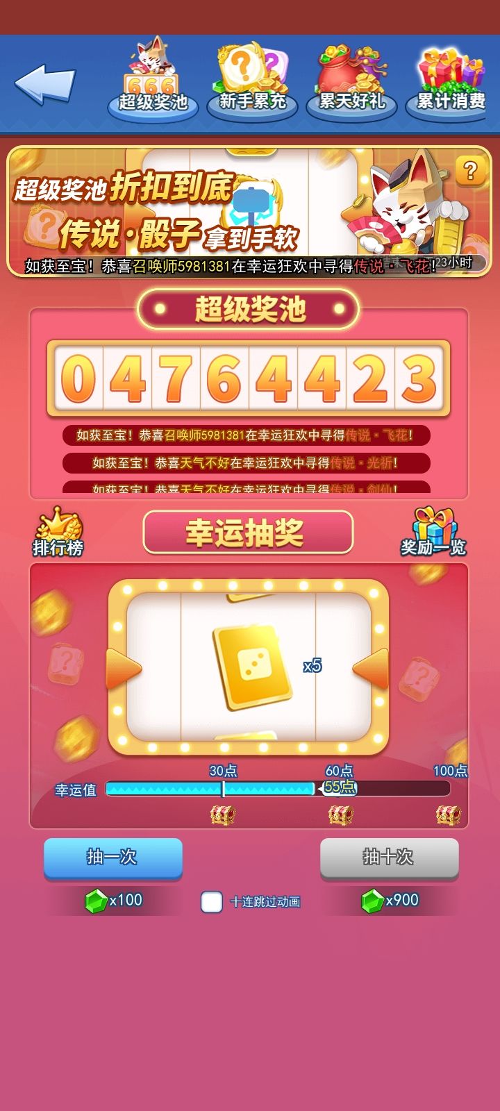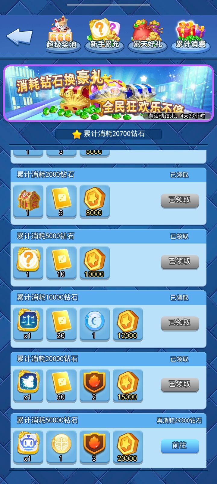 1.钻石不能乱花,新手期没有重大活动能够抽取版本强势骰子,钻石最好留到“超级奖池”活动中使用,因为在此活动期间往往会伴随着“累计消费”的返利活动,其中有低保可以拿(存的钻石的数量最好在40000以上)。