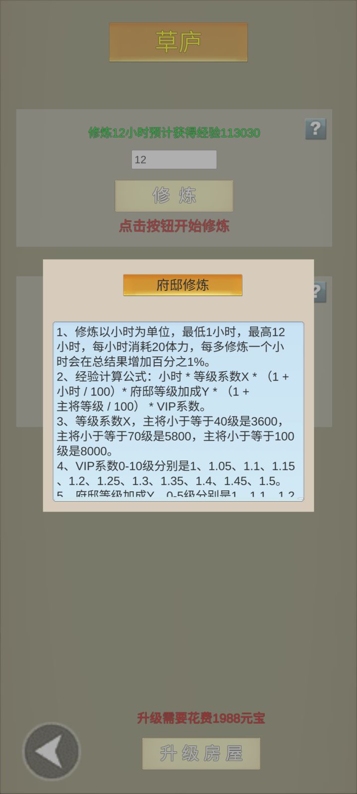 修炼可以获得大量主将经验,不过需要消耗体力,可以前往商城购买体力丹,性价比超级高。
