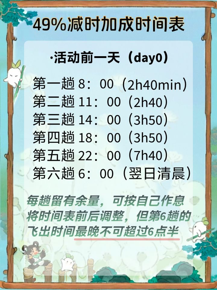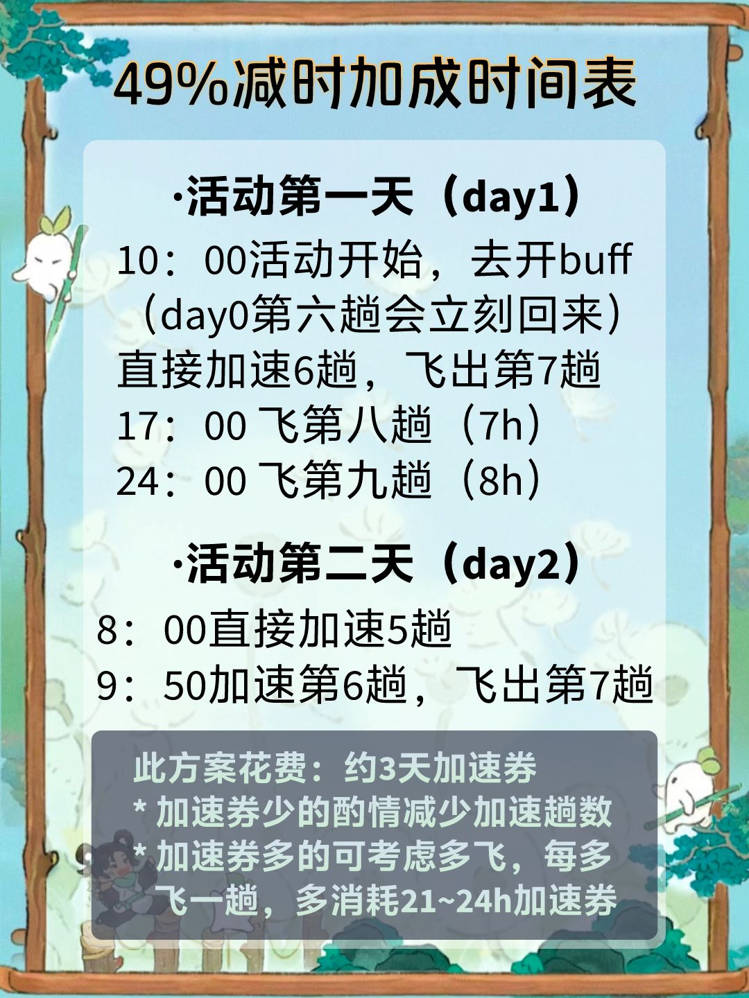 不是49%减时的小伙伴要多花加速券,时间也不太一样,自己算一下时间定闹钟就好了~