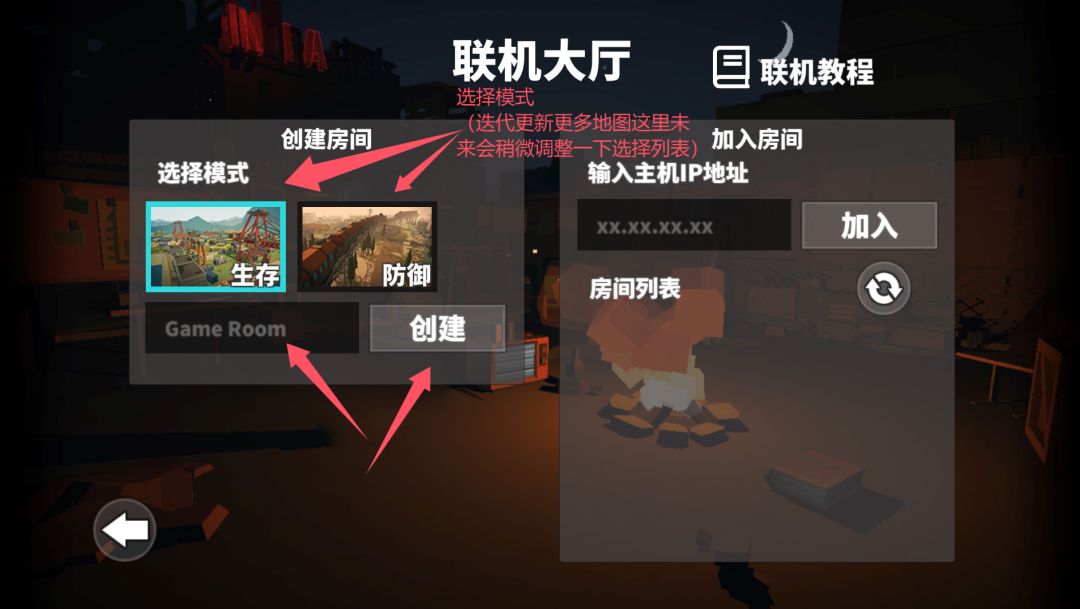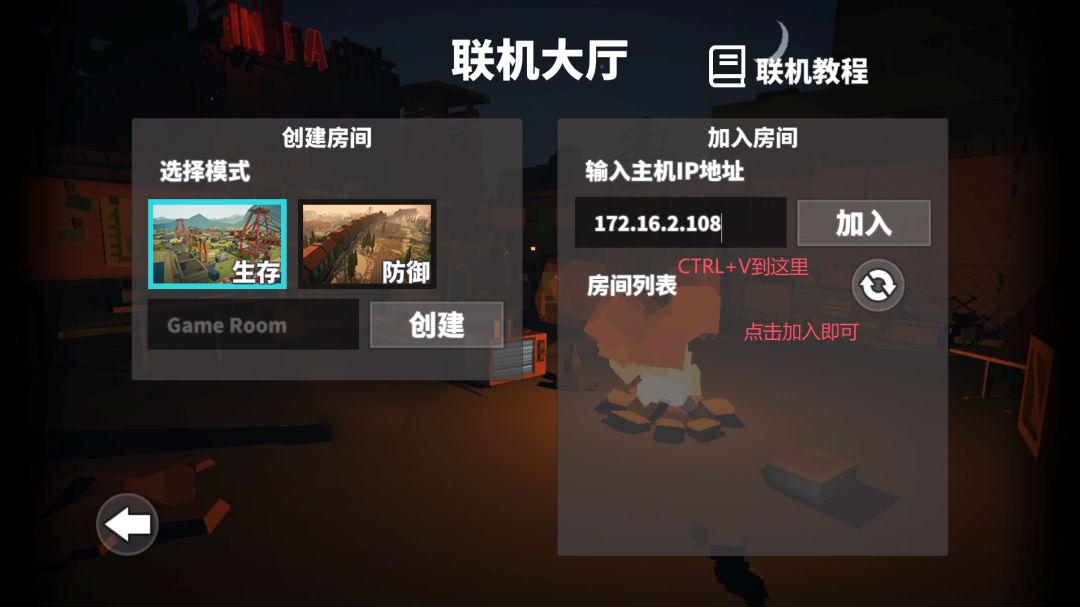 点击联机----输入房间名