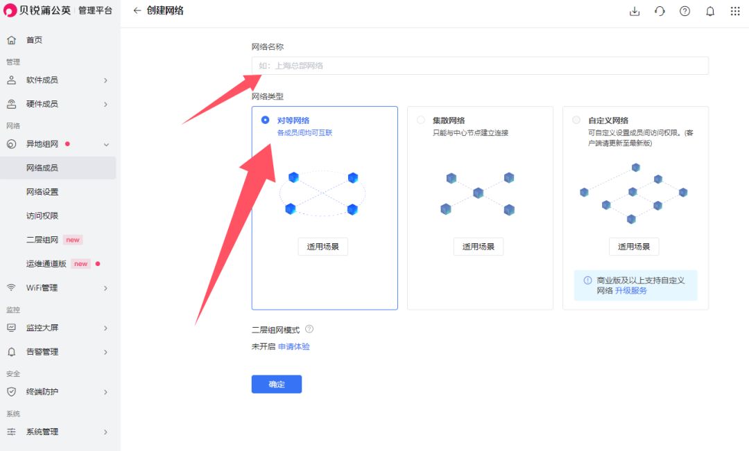 输入网络名称----选择对等网络