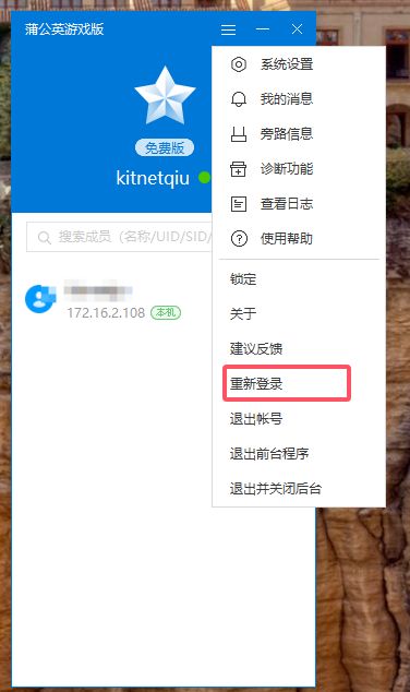 点击“重新登录”就会出现列表里了;这时候把id发给小伙伴让他们先加入到网络来,这时候列表会出现小伙伴们的电脑名字和ip地址