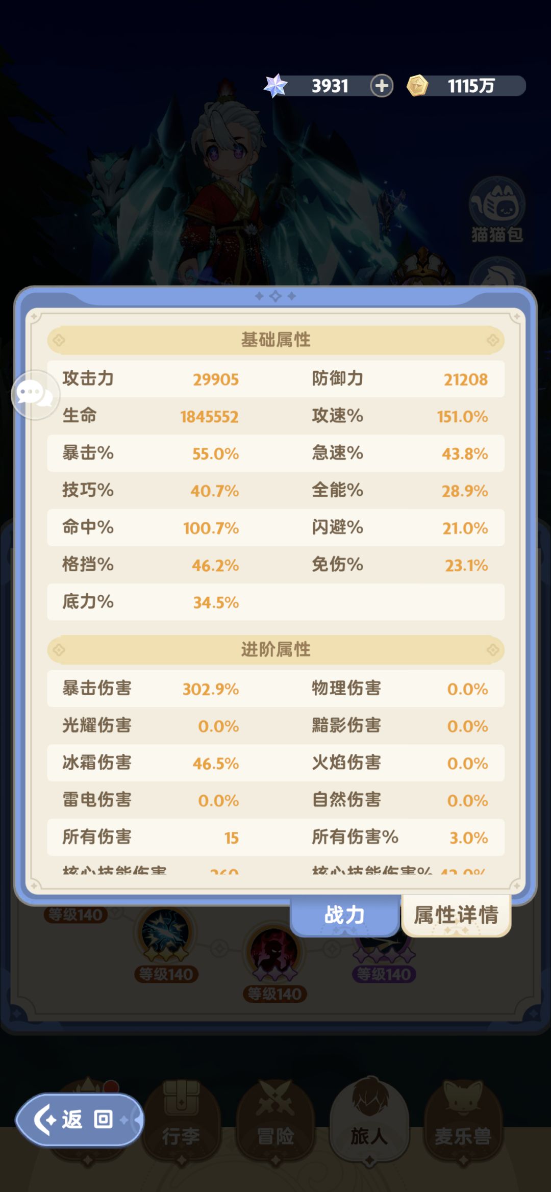 属性:命中优先100,建议是50暴击,40技巧,42极速后可以考虑带3爆伤提高上限。我是放弃了攻速带了技巧。