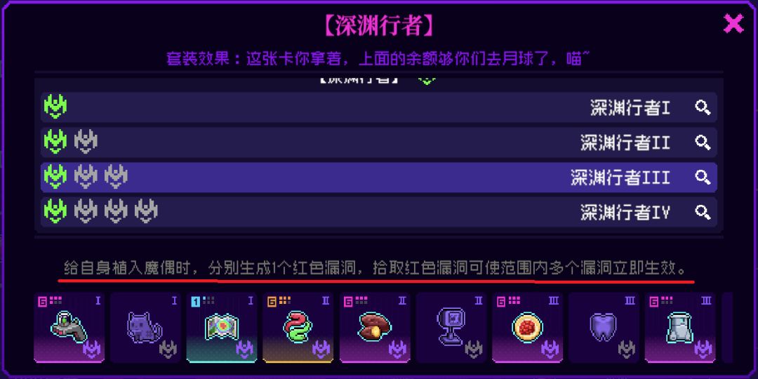 深渊行者3件套效果,如下图。