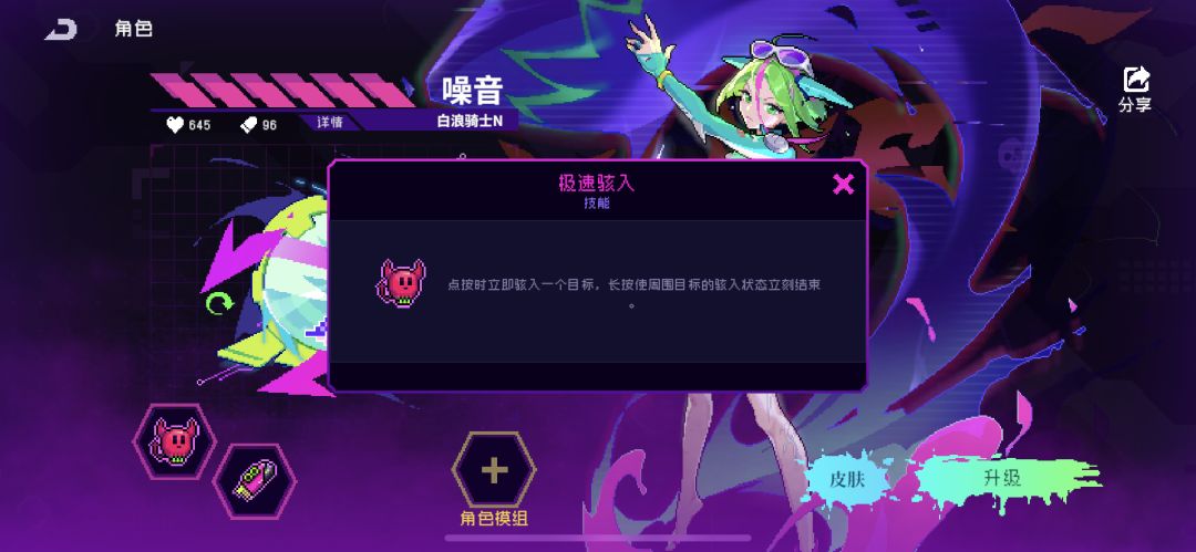 2.六模组的噪音长按技能,全部RAM由绿变红,大幅提升技能冷却,点按即可结算全部魔偶。