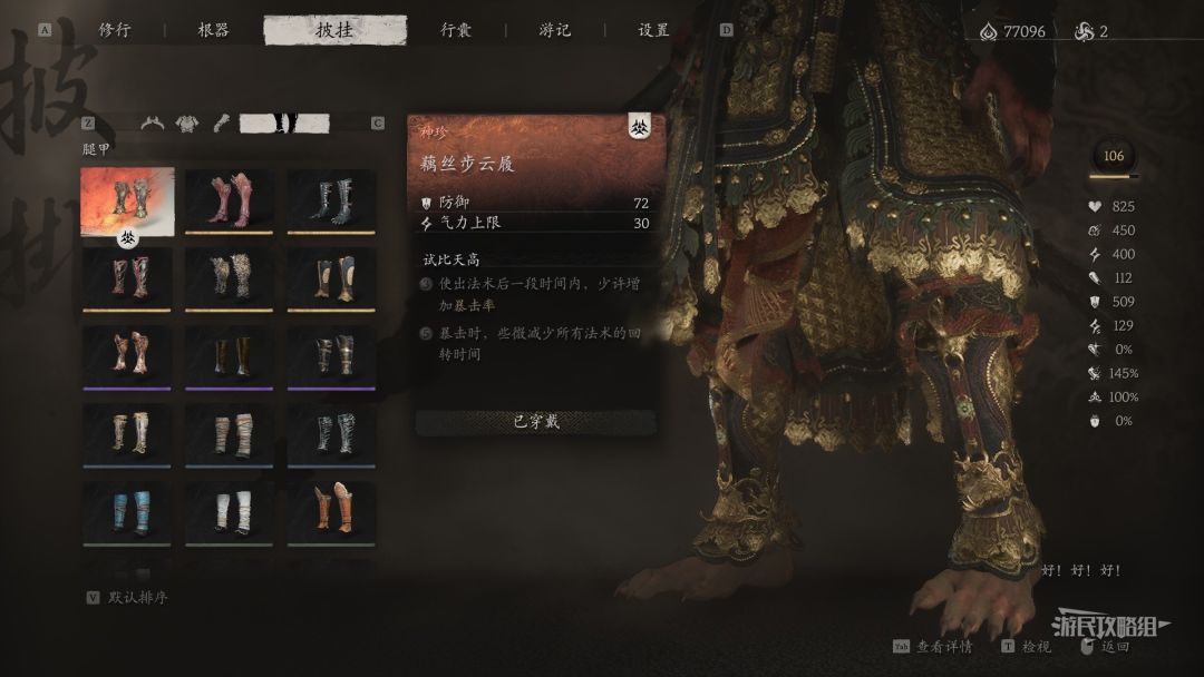 《黑神话悟空》第六回披挂图鉴及获取 第六章装备有哪些_腿甲-藕丝步云履