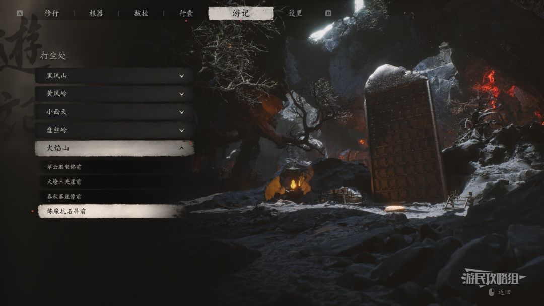 《黑神话悟空》全打坐蒲团位置及收集路线 黑神话悟空蒲团在哪_第五回-火焰山-炼魔坑石屏前