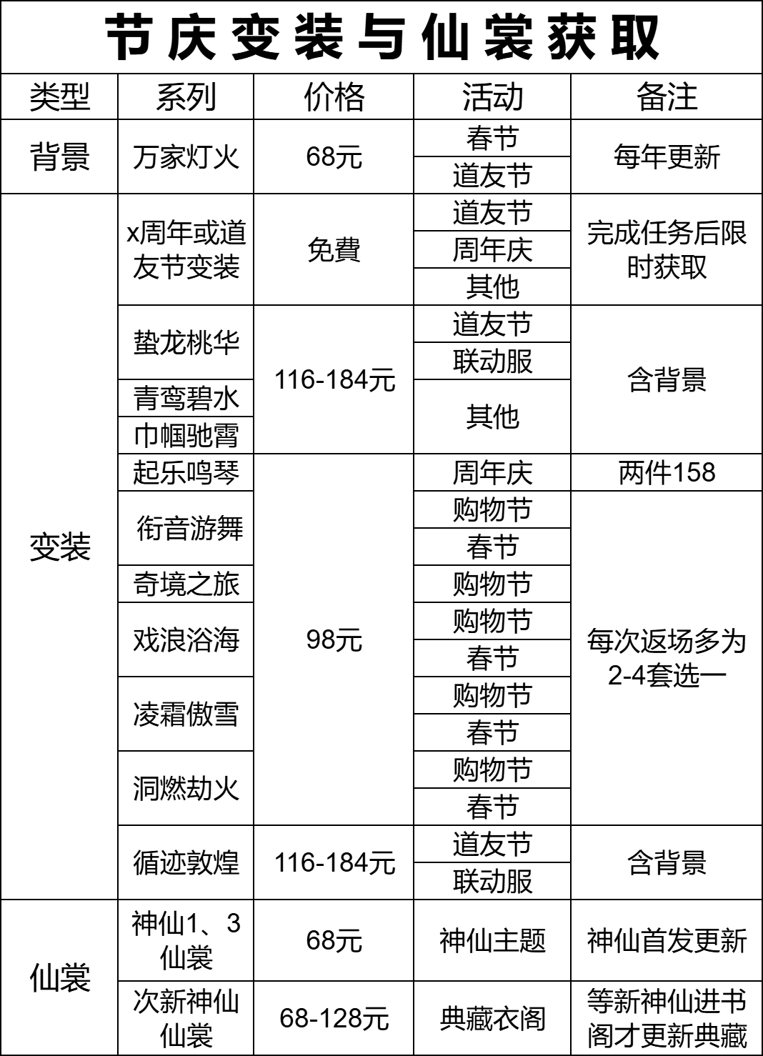 节日商店每年同一时间都会翻新一次品质,通常春节4选,周年庆給3选,购物节給1选,道友节給2选,白嫖每年还会换到不等的0星道具和红包。