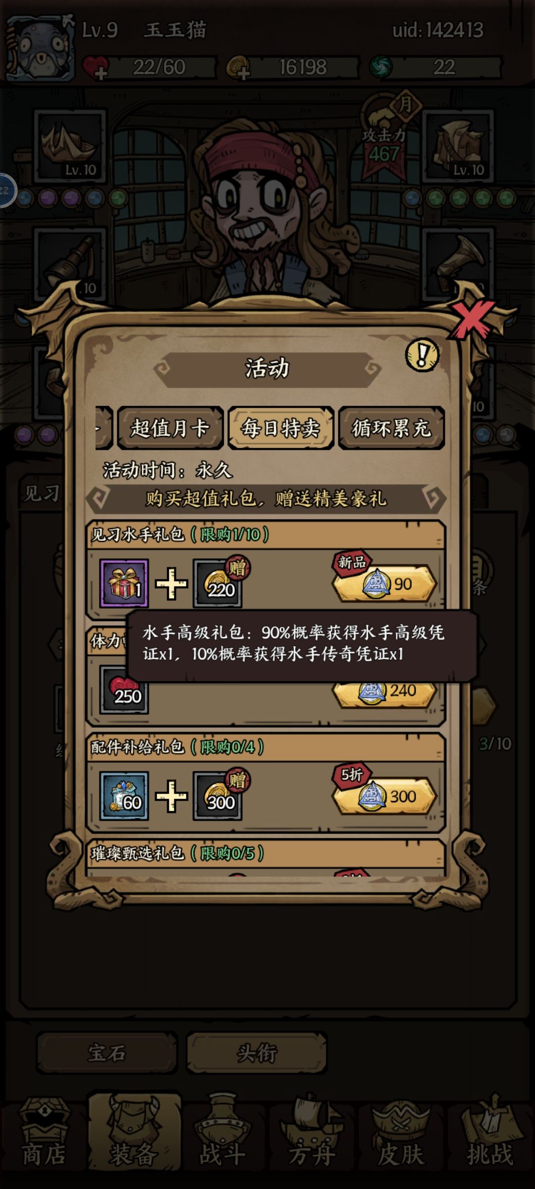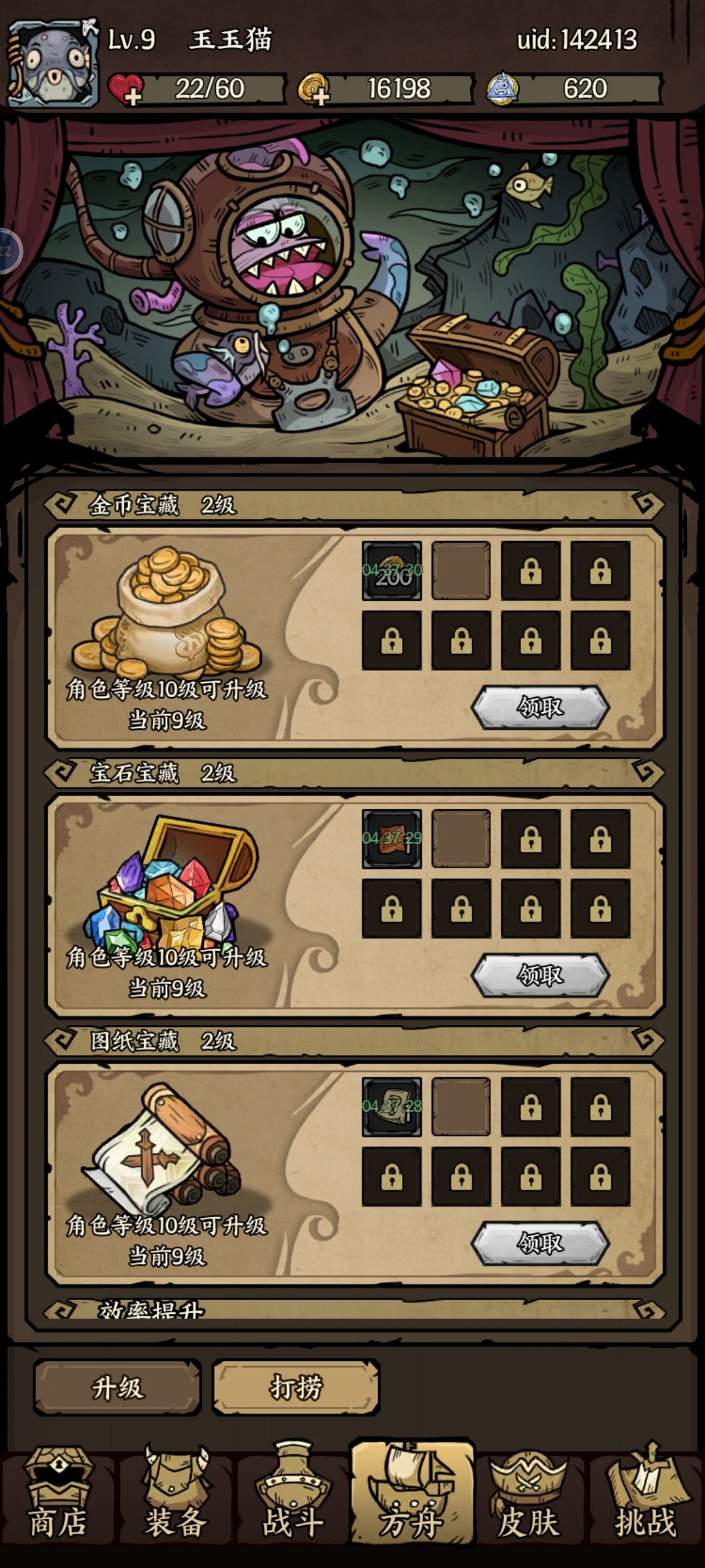 2.打捞,升级要很多勇者币,不够的话可以氪金买兑换比例1:10 蚊子腿罢了 收益低 长期收菜的好东西