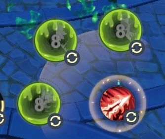 「Boss:疯魔偶师」蓄力后依次对所有玩家造成伤害,并附加类似「Boss:深林树王」的【技能:遗言】效果,让主动技能蒙上毒素,当玩家在此期间使用技能,则会以0.5秒的间隔持续降低玩家血量,可叠加,可驱散。