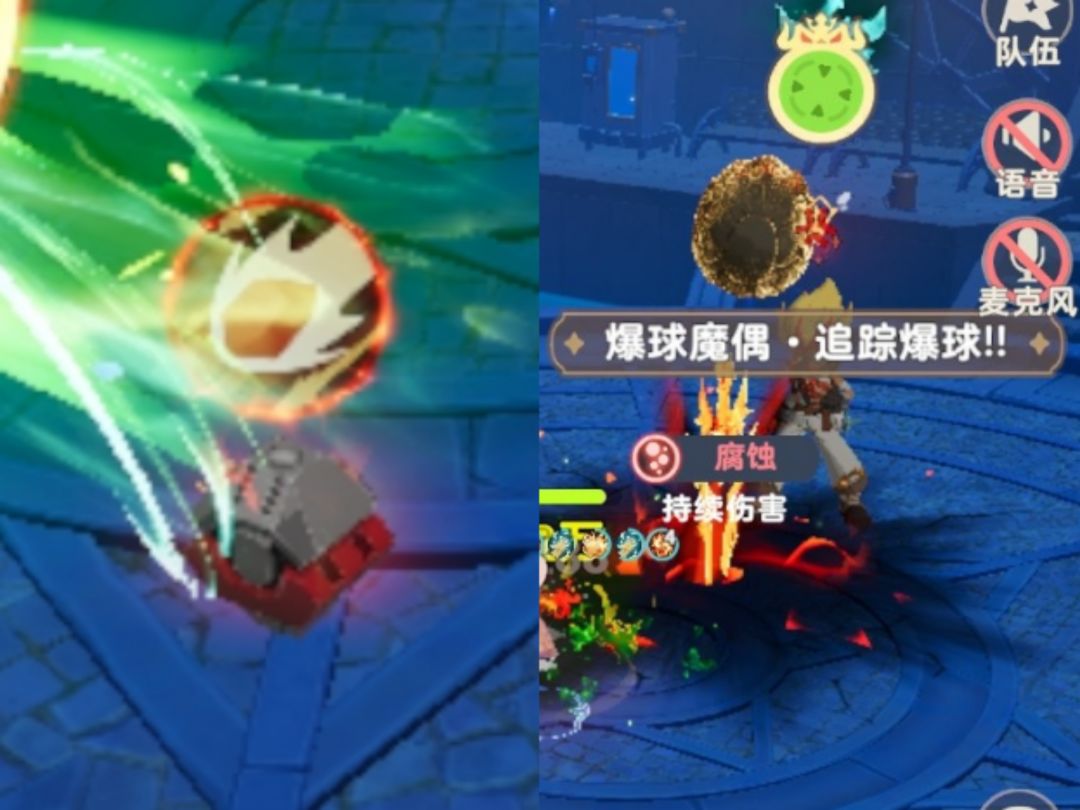 「Boss:疯魔偶师」吸收左侧红色空投,获得【技能:爆球魔偶 · 追踪爆球】,随后扔出一个爆球,爆球落地后对所有玩家造成中量伤害。