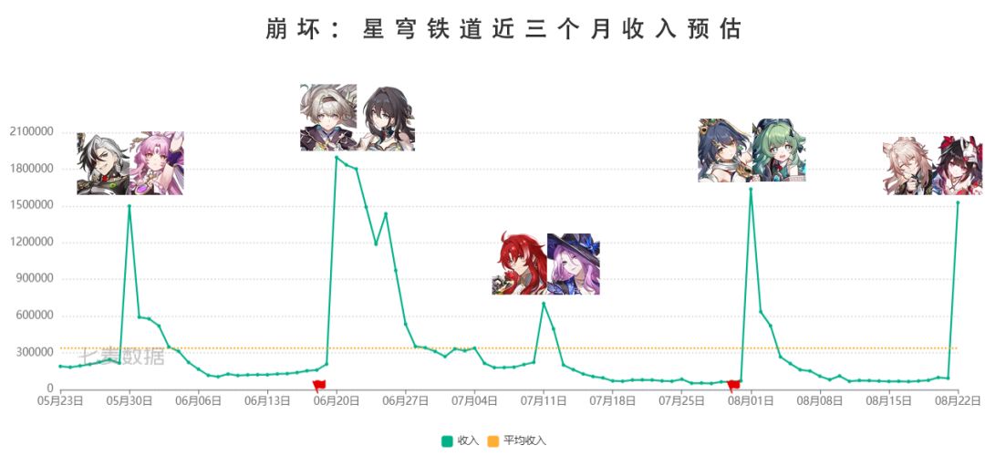 从近三个月的卡池流水我们可以发现,在最近的五个卡池中,流萤的流水仍然是最高的,本期的椒丘卡池流水并没能战胜云璃,即使是在花火复刻的加持下,流水仍然被云璃超越了。不过本期卡池流水相较波提欧和翡翠卡池来说,还是要高出不少的。