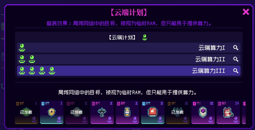 1.箱中之脑:绿色的RAM根据格数提供算力,算力再转换成流量攻击伤害。
