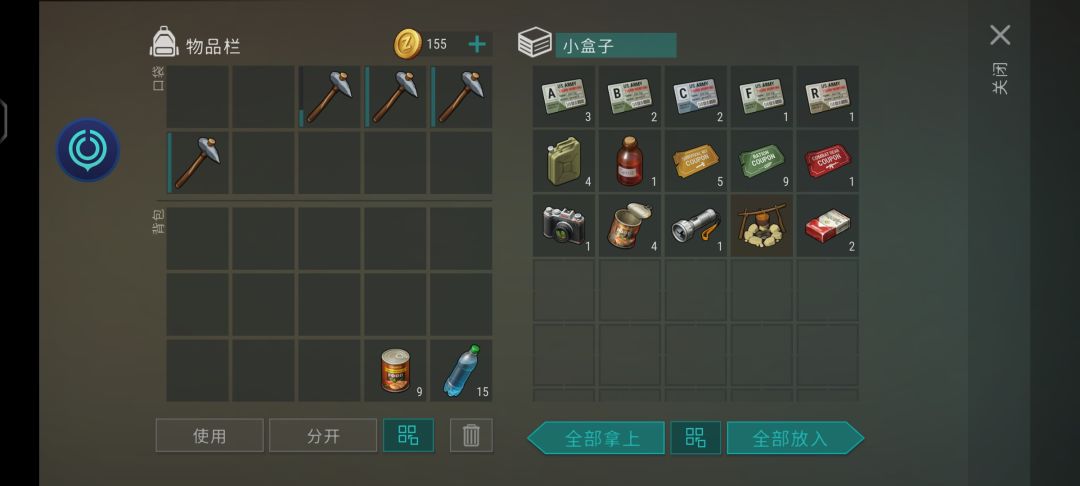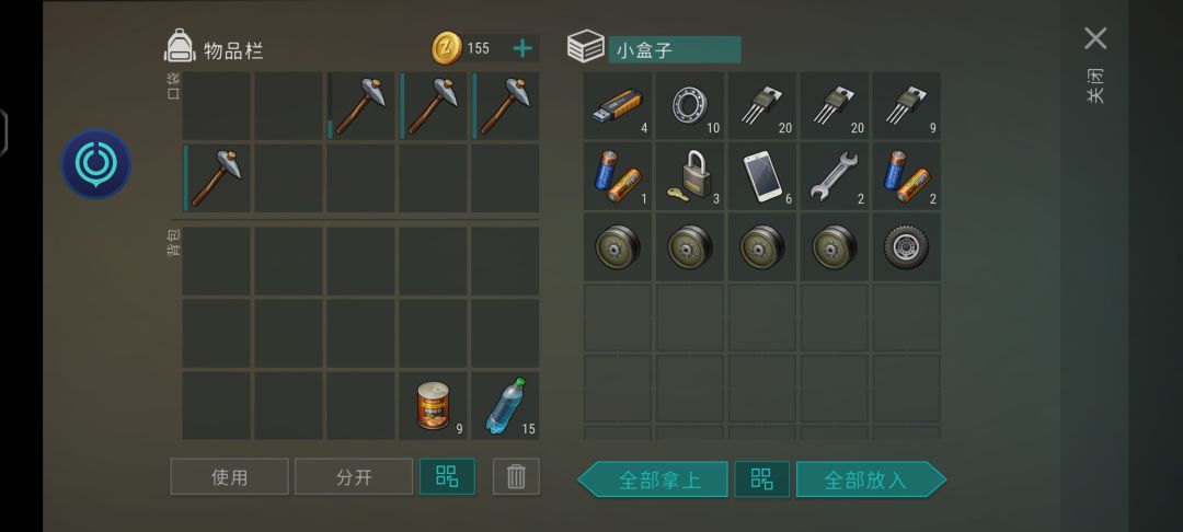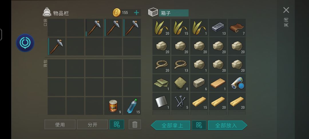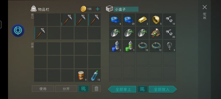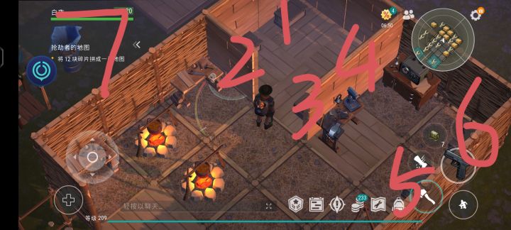 一把铁斧,6-7把石斧,这家比较穷,我把箱子的截图按编号放上去了,6和7忘截了,6有两把锤子一把木矛还有一些垃圾好像,7有几组铁矿和铁屑,另一个没标出来的箱子是空的。另外我还开了两木工台,都是空的,农田有两种子