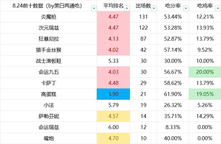 特别感谢:黑白两通吃,特别注意,铲子阿狸的数据是样本量过低导致的,命运95吃鸡率高,但在跟你同质量对手的对局中,10把也很难有1把活到成型,高蛋糕也同理,高吃鸡率需要转职+多装备局/战利品城邦多重前置条件才能实现,并非把玩推荐的阵容