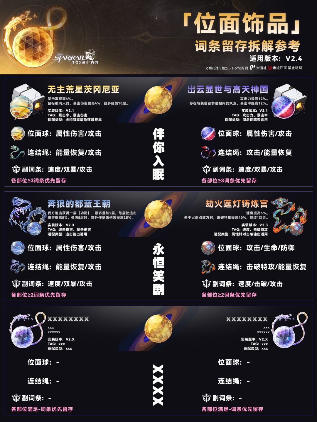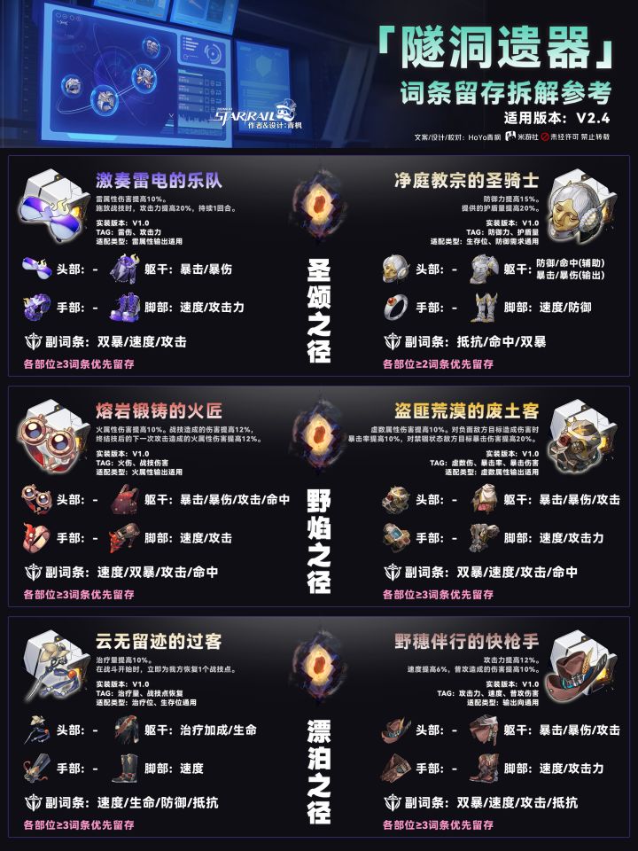 【V2.4攻略】遗器词条留存/拆解推荐