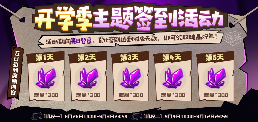 开学季来临,许多宝藏猎人们又有了新的挑战!宝藏猎人协会特地准备了开学季礼包,替大家减负啦~活动期间累计登录,即可领取每日魂晶好礼哦~