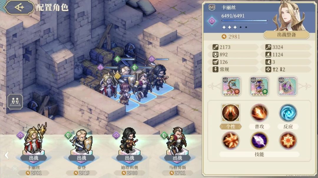 上场艾达和法c角色,第二回合开启号角集火帕米娜,再清理小怪,难度适中;