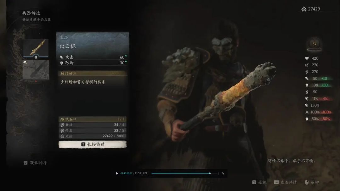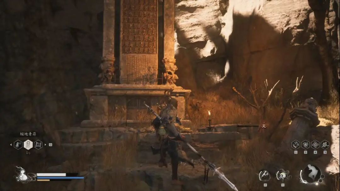击败石敢当获得铁石心、玲珑内丹、受蕴,并解锁新的武器出云棍。击败石先锋解锁藏风套,是打虎先锋前最强的套装。随后我们往另外一边走,就到了携魂崖—碎石台土地庙,往前我们击败鼠司空获得其精魄。并且下方台阶处是第二个蒲团—碎石台谷壑前(2/6)。沿着山路走我们拿到太乙紫金丹,增加法力值上限。