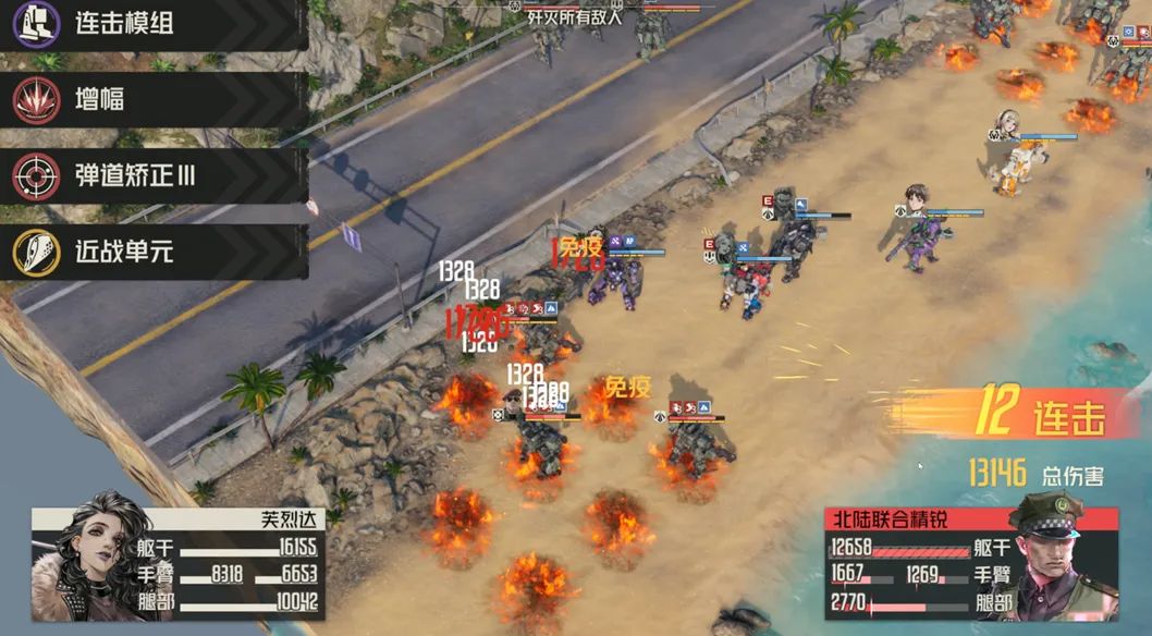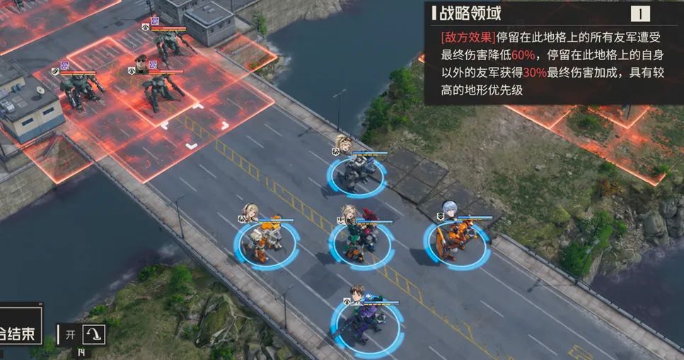 接着便是难度有点夸张的14-3......这关敌人会在行动之后自动在脚下形成一个“战略领域”,而且这个领域是无法被覆盖的,什么我方的火焰地形这些通通无效,此外由于这个阵中的敌人都有60%的最终伤害降低与30%的最终伤害提升,所以我们利用常规玩法打起来的难度也是极高......当然用取巧打法想要通关的难度也是极高,只是这样玩的可能还有一丢丢希望而已。那么这关可考虑的伤害来源大致有: