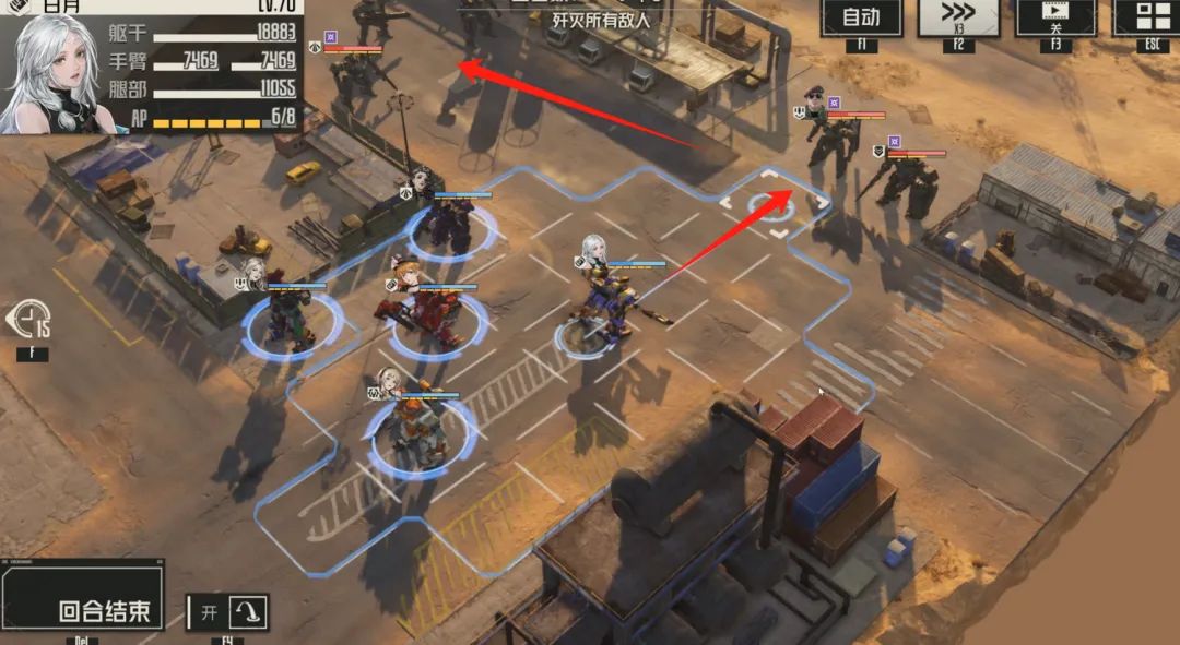 然后14-2这关的难度比14-1要高一些,其考研我们练度的一个核心点是在于我们能不能抗住敌人部分的输出,这关可以考虑上阵的角色有芙烈达+威廉+梅丽莎+艾琳+1位具有非躯干瞄准能力的角色,例如真嗣、凯莉这些都可以。此外这关敌人在非躯干部位损坏之前,躯干是无法受到伤害的,此外又由于固伤降低等buff效果,所以例如虹、白月、明日香等角色的功能也会大幅下滑,所以这关我们才会上阵更多的突击角色或狙击角色。那么这关的具体打法就是靠着艾琳的降低移动力debuff效果,用以限制右上方两波敌人的行动速度,然后我们第1回合必须快速将左下方的3个敌人快速打残或歼灭,然后利用真嗣和威廉作为两个支点慢慢蚕食上方和右上方逐步靠近的敌人。此外依然上方有一个电磁炮敌人的缘故,我们在开局2回合期间最好能站成一字长蛇阵,特别是艾琳和梅丽莎不能被上方的电磁炮敌人攻击到,要不然不能使用技能就有点呆了......
