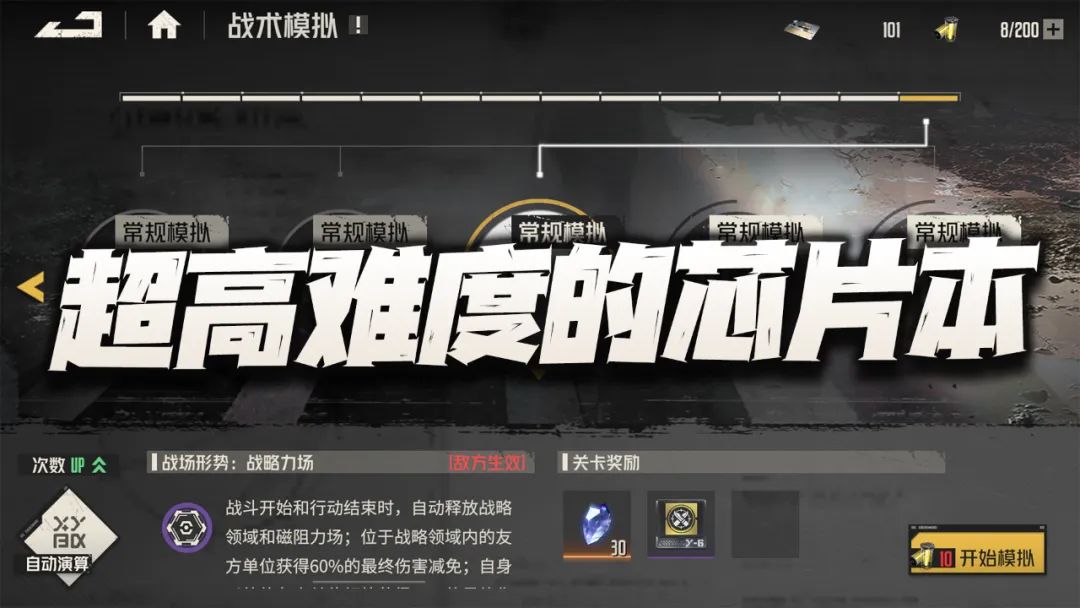 大家好,我是有点绝望的何二维一。今天维一是打了一天的芯片本......虽然说此次更新后这个芯片本一是更新的数量并不多,二是更新的奖励并不好看,但这个难度吧......却着实是有点吓人,今天维一就想来简单的聊聊这个问题,因为在过去官方的设计逻辑之下,同时考虑到我们在各个版本中能够接触到的所有高难度副本,芯片本的难度一直都是其中的首席之位,几乎没有之一,所以此次的这个芯片本到底难度又有多高呢?接着我们就来简单......描述一下。
