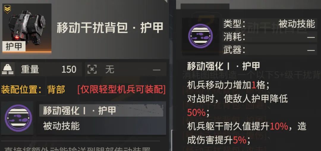 那么客观来讲,“征服者背包”就是为了中甲和重甲准备的“移动干扰背包·护甲”,而经过实测的确如洛莎等角色多1格移动力后,我们可以在战术方面获取更大的灵活度,同时这些适配的中甲或重甲也能更好的跟上未来大部分的步伐,毕竟目前版本跑的越来越快也是一个核心趋势,所以这个背包的出现也是有这部分的原因。