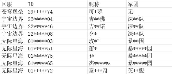 以下公布名单为部分近期使用第三方软件用户。经技术手段查实后,我们已对以下帐号进行封禁处罚。请各位玩家引以为戒,远离第三方软件。