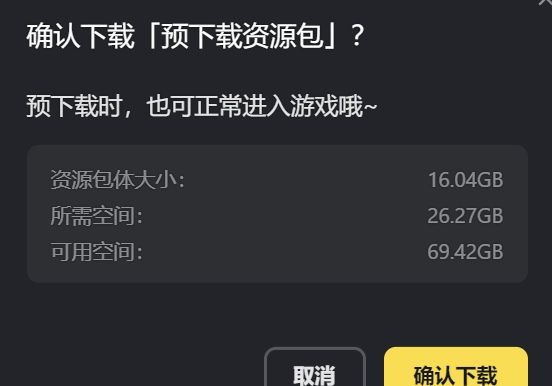 若旅行者的设备存储空间较为紧张,可以为资源包预留空间(约16~23GB),等待至版本更新维护期间或之后直接进行更新。