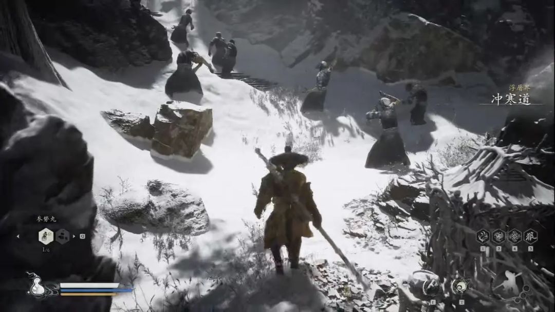 右手边能看见一条上山地道路,穿过这条道路能看见一只隼居士站在岩石上,击败他获得其精魄。