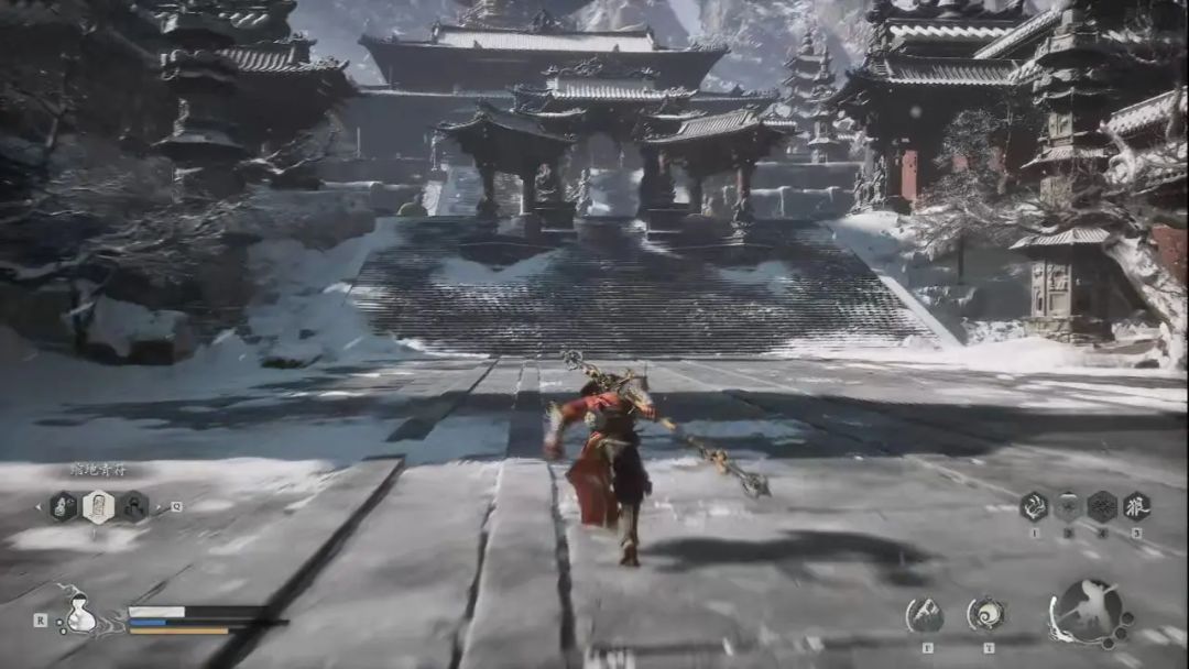 里面还有小西天最后一个蒲团—雷音寺佛殿内(5/5),出来后我们直奔小雷音寺—大殿土地庙,只要我们进入大殿后就会开启BOSS战,遇到我们的雷电法王—黄眉,打完黄眉一阶段后,他会把我们吸入后天袋,在里面我们与猪八戒重逢一起再打赤尻马猴(3/3)。打完后我们会变成赤尻马猴,一路来到最后的舞台,打黄眉的二阶段。黄眉还真会无敌金身(已有取死之道),我们使用禁字法,强化自身,四段棍势能打出巨额伤害。