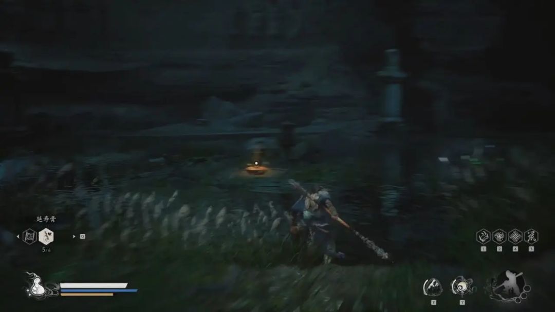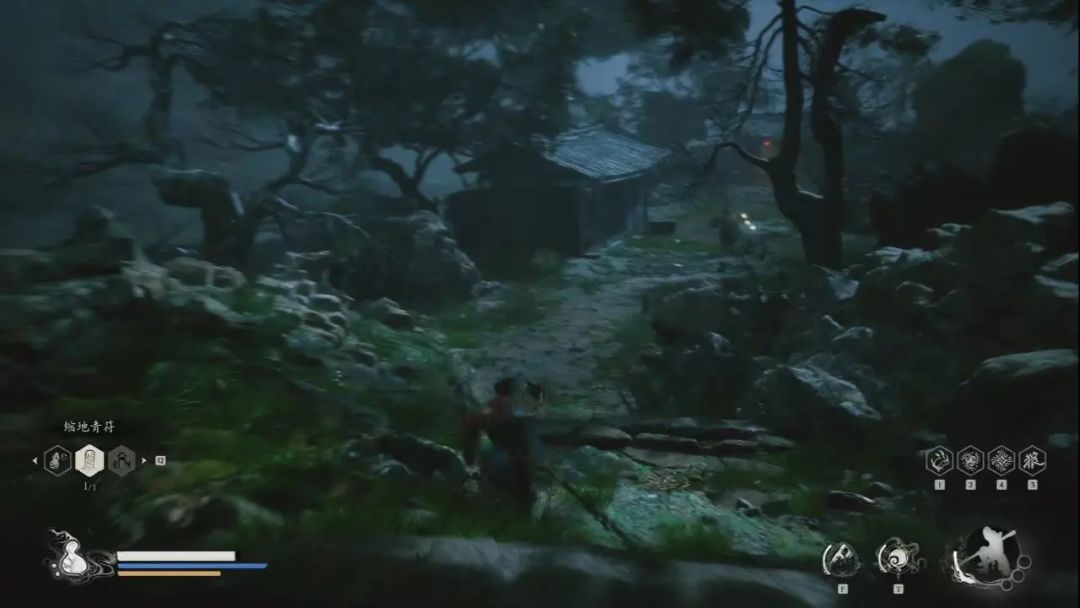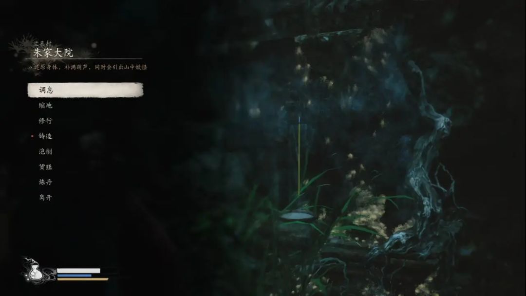 我们白天再来一次,庭院中间会刷新一只幽灯鬼,击杀能获得其精魄(大白天看不见他身上蓝光,还以为普通小怪差点被拿下),在右侧入口的房子里面发现绿色金光酒缸(这个晚上也有),击破能获得三冬虫。