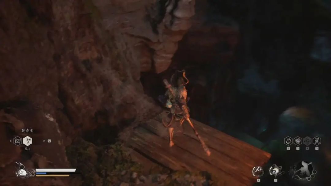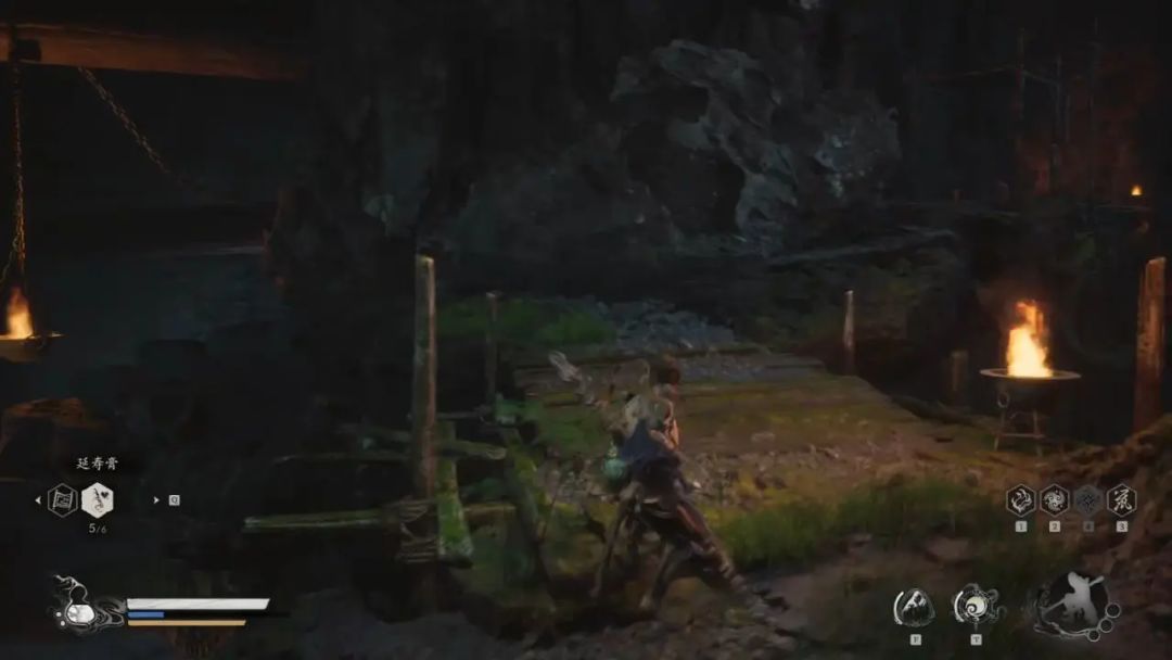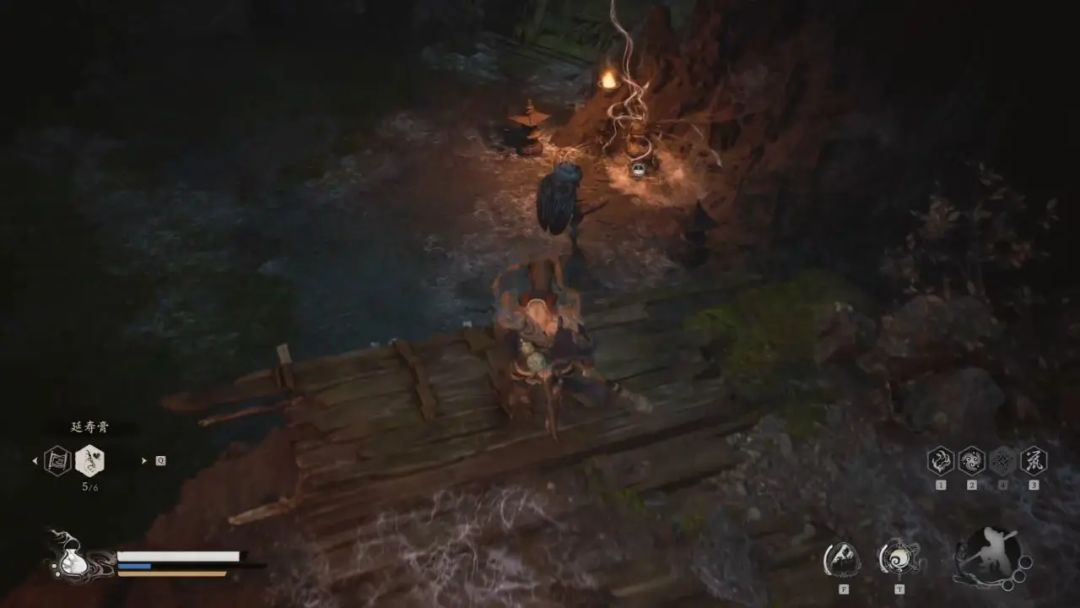 我们打完后回到岔路口,这次我们从左边木头平台走,沿着木桥我们来到尽头跳下去,继续往左边走继续跳。