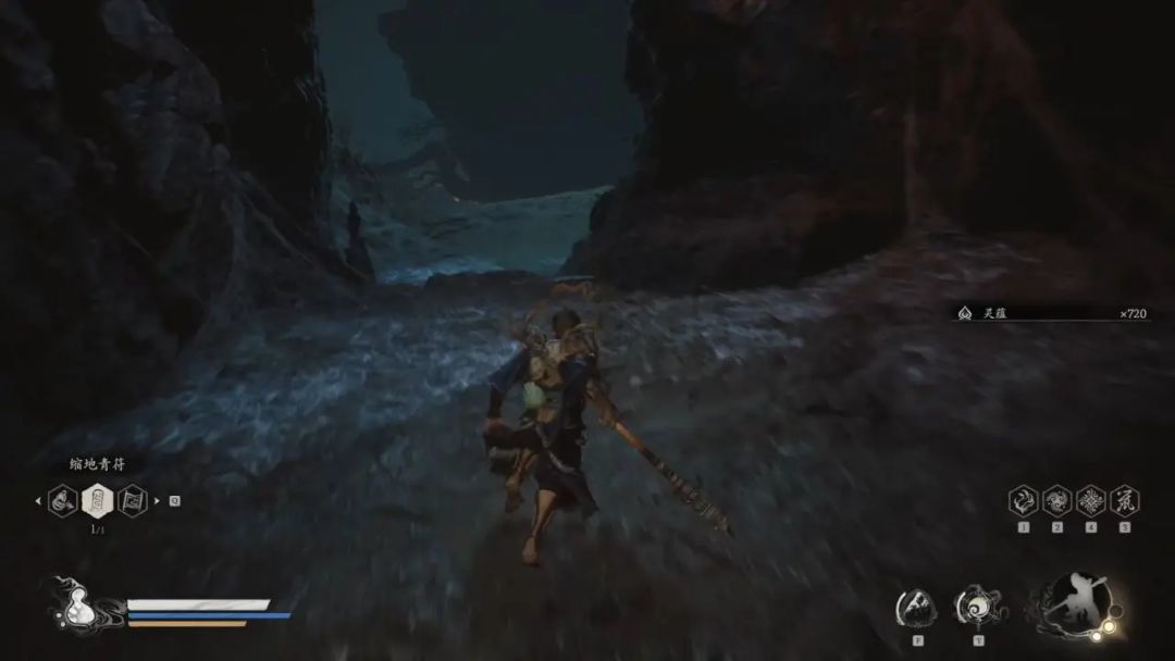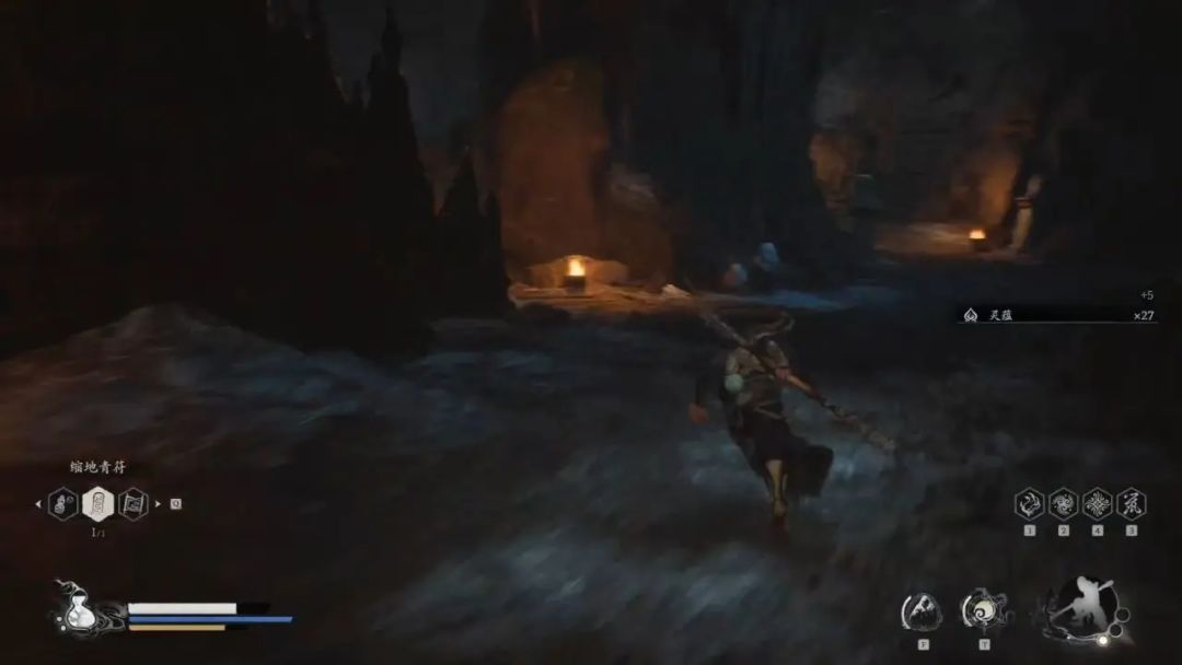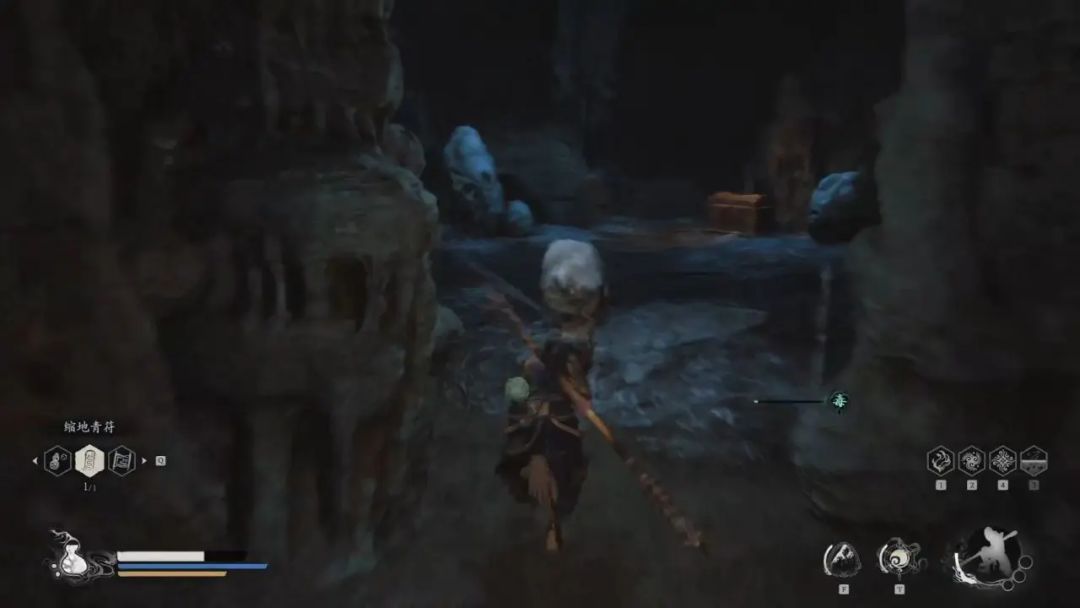 我们先不着急跳进坑里,坑后面的屋子里面有一颗碧藕金丹,能够提升我们的最大生命值,拿完金丹后再跳下去。