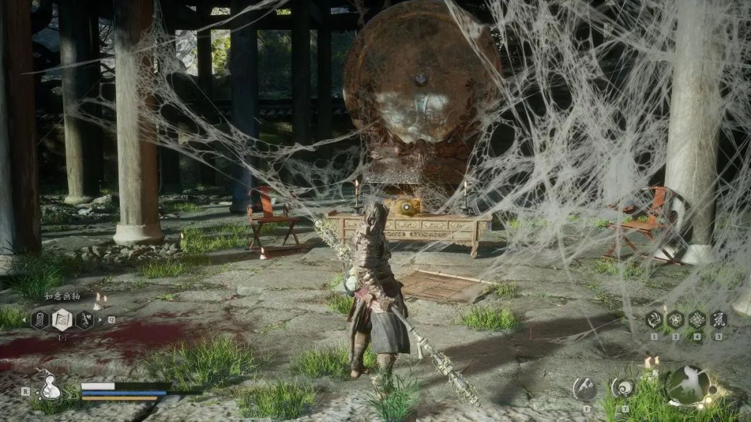 我们穿过廊桥,击杀假面骑士Amazon(看过这部片的人应该会和我一样觉得盘丝岭的昆虫人真的好像Amazon)后有概率掉落—头冠·长须头面,我们的左边房间也有一个宝箱,我们点燃兰喜村—朱家大院土地庙直接进入大院。