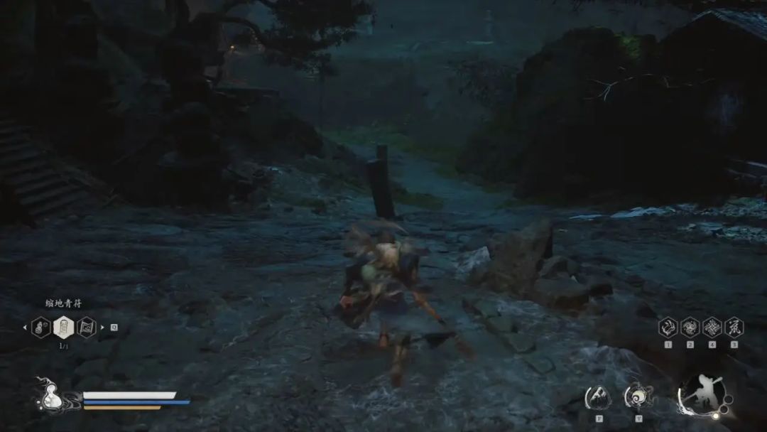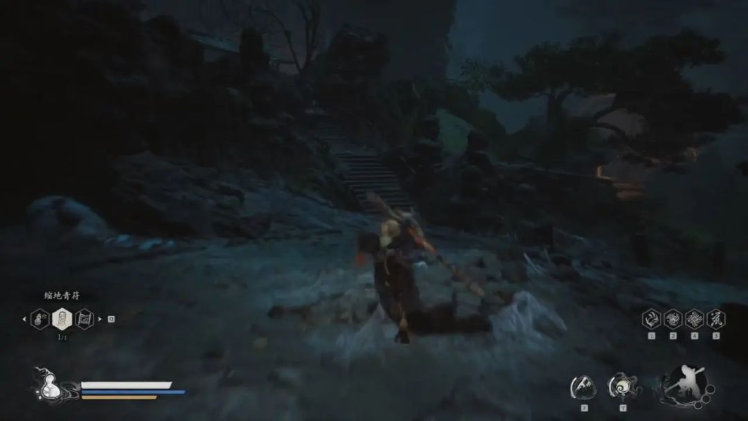 我们往前走能看到盘丝洞—下层土地庙,点亮后我们能看到前方是一个岔路口,我们遵循左手原则,先上最左边地楼梯,在山顶房子里能拿到酒食—血杞子,拿到后我们传送回土地庙。