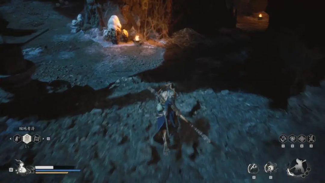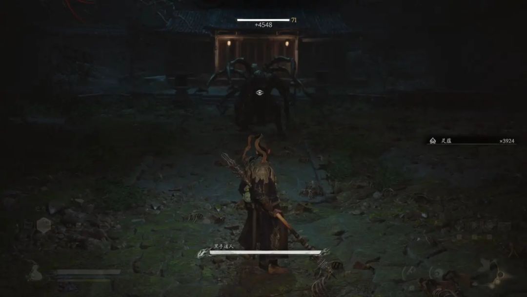 打坐完毕后,我们来到土地庙那,土地庙右侧有个向上的通道。通道内有很多倒挂的蜘蛛卵,我们清理后继续向前,可以看到一个很大的蜘蛛卵,打到一半血,黑手道人会破茧而出,我们要打断他背后至少四只手,有概率会掉落金色护手—下毒手,第二次打就不会掉落了。