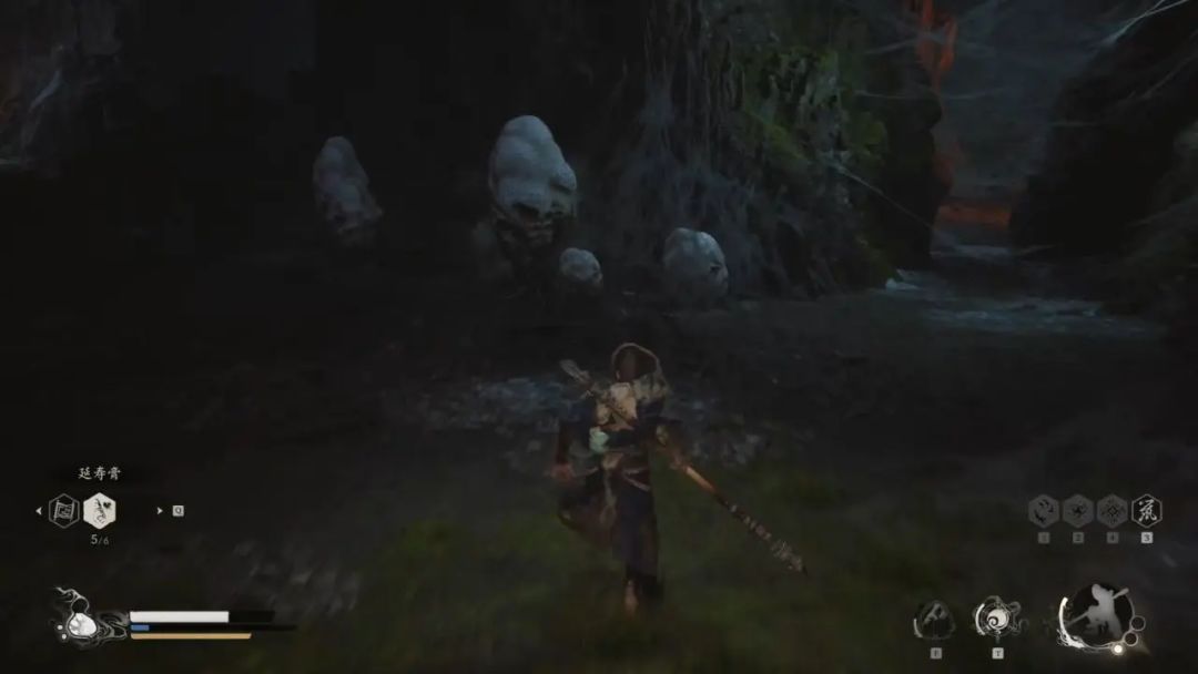 这次我们走右侧上山道路,遇到岔路口我们往右侧走,小心那些会动的大型蜘蛛卵会出现昆虫人,在它破壳而出前打破能阻止它出生,同时击破蜘蛛卵会有概率掉落珍宝—卵中骨,以及要紧事物—茧圆(精魄—琴螂仙获取道具需要3个)。