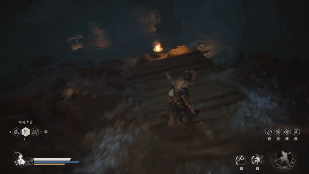 对话完后,我们继续把一路的虫卵全都打破,刷卵中骨(插一嘴,我看其他up说掉落概率很低,我随便打几个已经有三个了,真搞不懂为啥)和茧圆,这个地方我觉得是盘丝洞虫卵最多的地方,来这里刷最方便。走到岔路口,前面是盘丝洞—绝想崖土地庙(想刷就传送到这个土地庙),右侧是符咒(2/4)和宝箱。