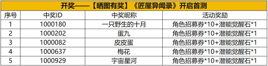 【已开奖】晒图有奖-匠屋异闻录开启首测,晒角色ID赢游戏内奖励