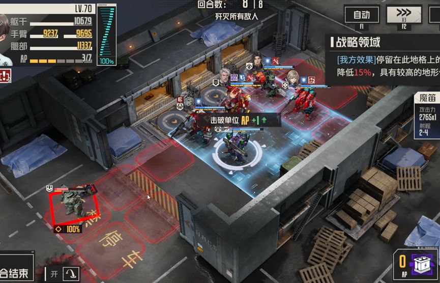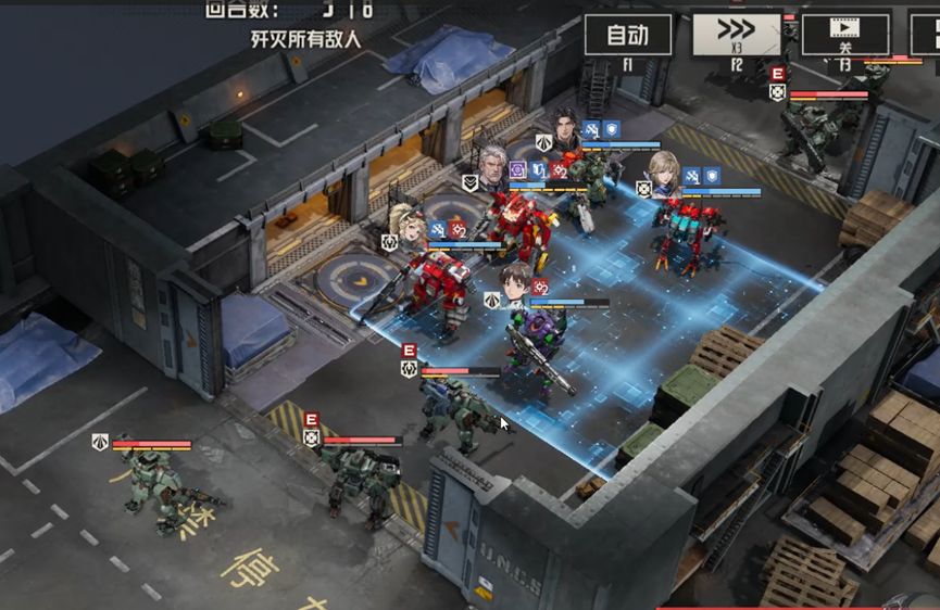后面就比较简单了,电磁炮兵和最后的boss会靠在这里,碇真嗣利用boss对电磁炮兵的援护,每回合对boss进行两次输出,西尔维亚也对boss进行输出,最后将所以敌人消灭